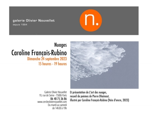 Caroline François-Rubino2023-09-09 18:54:312023-09-09 19:31:10Nuages - Galerie Olivier Nouvellet - Paris 6e - Dimanche 24 septembre 2023 - 15 heures / 19 heures