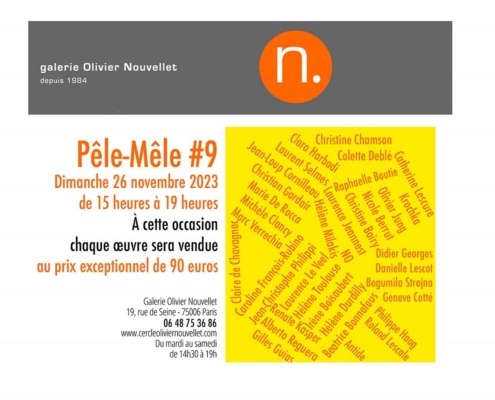 Caroline François-Rubino2023-11-16 12:06:032024-03-26 15:36:32Pêle-Mêle #9 - Galerie Olivier Nouvellet - Paris 6e - Dimanche 26 novembre 2023 - 15 heures / 19 heures